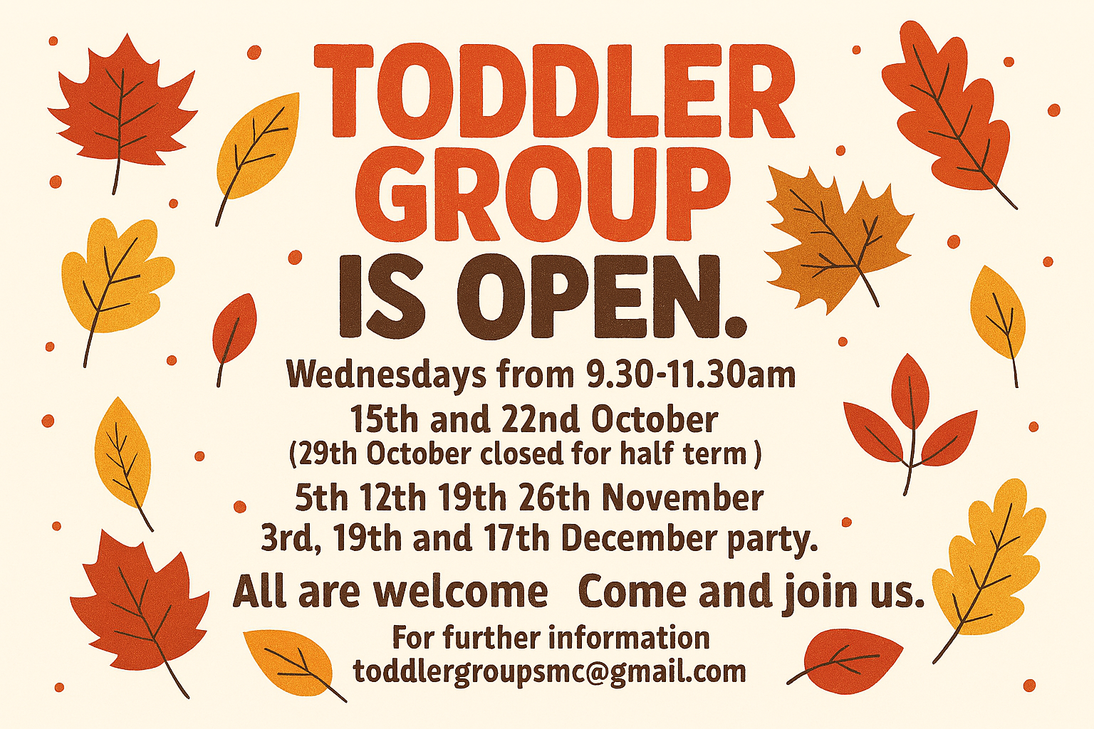 For further information: email toddlergroupsmc@gmail.com